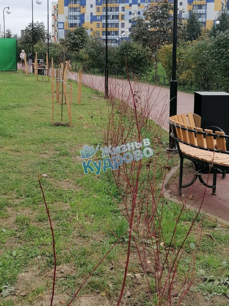 В южной части Кудрово вдоль ручья за школой высаживали деревья, начали нормально, а потом, видимо, устали, и просто выбросили саженцы в