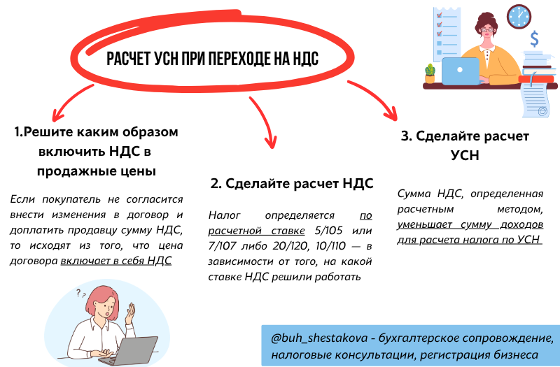 напомню, сейчас в Правительстве РФ рассматривают законопроект, который может кардинально изменить правила игры для бизнеса на УСН: лимит перехода на уплату НДС планируют снизить с 60 млн. до 10 млн. руб. - об этом подробнее читайте в статье Какие налоговые изменения ждут нас с 2026 г. т.е. если законопроект будет принят в таком виде, котором внесен на рассмотрение, уже с 2026 года бизнес с доходом выше 10 млн. в год окажется в зоне НДС и если с УСН вам, дорогие предприниматели, обычно всё понятно — доход получил, налог заплатил, то с НДС начинается другая логика другой расчет по секрету напишу, что большинство автоматизированных онлайн-бухгалтерий не умеют считать НДС правильно, часть бухгалтеров в принципе никогда не работали с НДС, а предприниматели сильно путаются в формулах для расчета НДС 1. Решите вопрос, как включить НДС в продажные цены если клиент не согласен подписать доп.соглашение и платить сверху, придётся исходить из того, что НДС уже включён в цену договора Т.е. факт