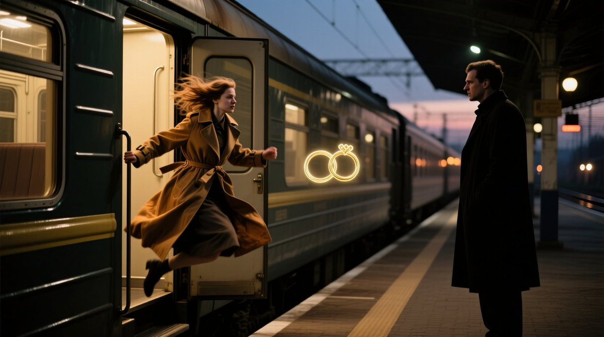 Но двери открылись. На перроне стоял Артём Валентинович — в пальто, с букетом белых роз. Он подошёл, взял её сумку, чмокнул в щёку.