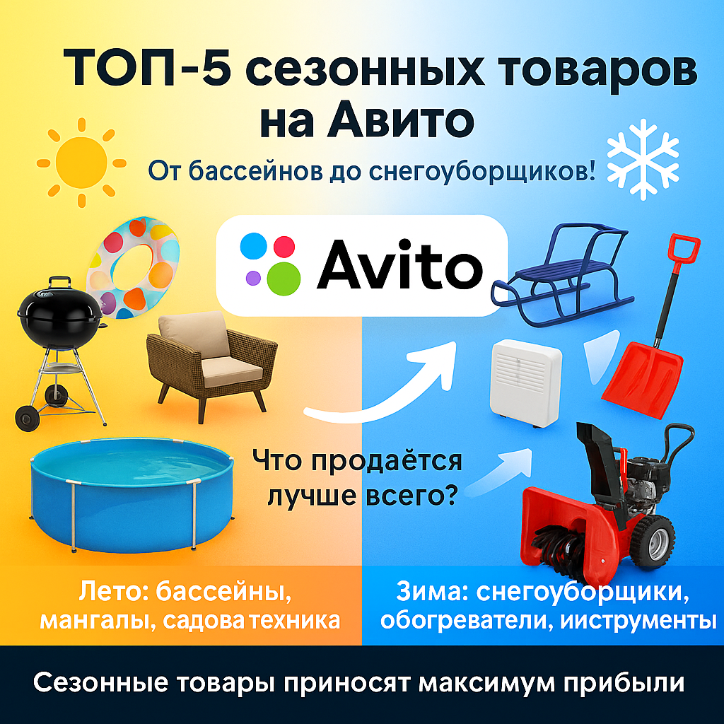ТОП-5 товаров для сезонных продаж на Авито (от бассейнов до снегоуборщиков)