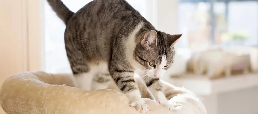 Поведение кошки, когда она «месит» лапами хозяина или мягкие поверхности, называется инстинктом «молочного шага» и действительно связано с детством животного. В первые недели жизни котёнок, сосая молоко, массажирует живот матери передними лапками, стимулируя выделение молока. Этот инстинкт остаётся у кошки на всю жизнь и во взрослом возрасте выражается в ласковом разминании хозяина как проявлении доверия, спокойствия и комфорта. Также это поведение считается выражением любви и привязанности к человеку — кошка показывает, что чувствует себя рядом с ним защищённой и счастливой. Массаж лапами сопровождается расслаблением, мурлыканьем и помогает животному получить удовольствие и успокоиться. Кроме того, на подушечках лап находятся железы, выделяющие феромоны, поэтому разминание лапами — это еще и способ отметить территорию и своего хозяина. В моменты стресса или беспокойства кошка может повторять это движение, чтобы успокоиться. Инстинкт «молочного шага» также помогает кошкам подготавлив