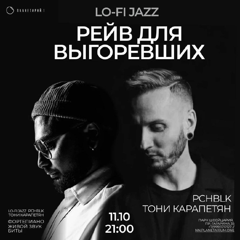 Рейв для выгоревших: Lo-Fi Jazz Этот вечер создан для тех, кто устал от бесконечных дел, дедлайнов и хаоса. Здесь не нужно быть бодрым и «включённым» — можно просто расслабиться, выдохнуть и позволить музыке делать своё. PCHBLK запускает мягкие биты, на которых держится весь поток. К ним присоединяется пианист Тони Карапетян — его джазовые импровизации звучат как дыхание, как светлая пауза внутри дня. Вместе они создают живую ткань музыки, в которой нет давления, только плавное течение. Под куполом планетария это превращается в особенный ритуал: рейв без суеты, где ритм не разгоняет, а успокаивает, а звёзды сверху напоминают, что можно быть просто «здесь и сейчас». 11 октября, в 21:00 Планетарий 1 😄 Мероприятия Нижний Новгород. Я местный! 📱 Мероприятия Нижний Новгород. Я местный! в MAX