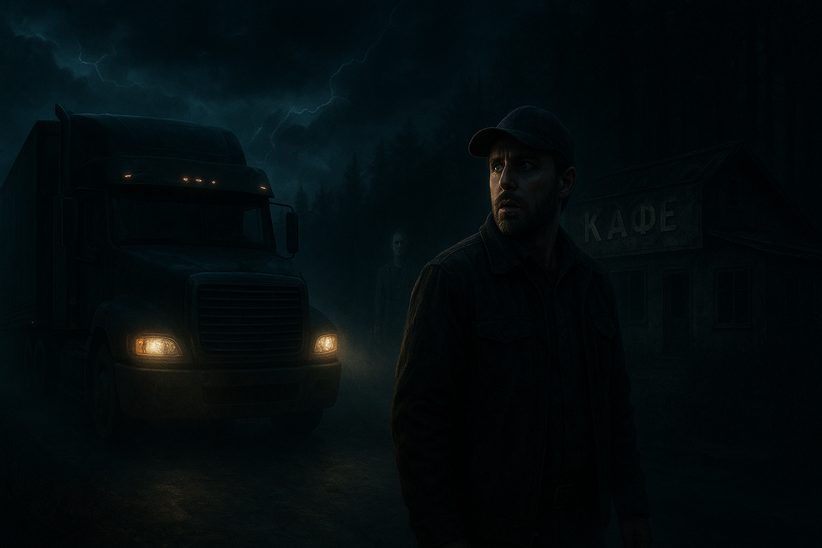 Фары моей фуры отражались в мокром асфальте, и на секунду показалось, будто кто-то двинулся в отражении, словно прошёл мимо кабины.