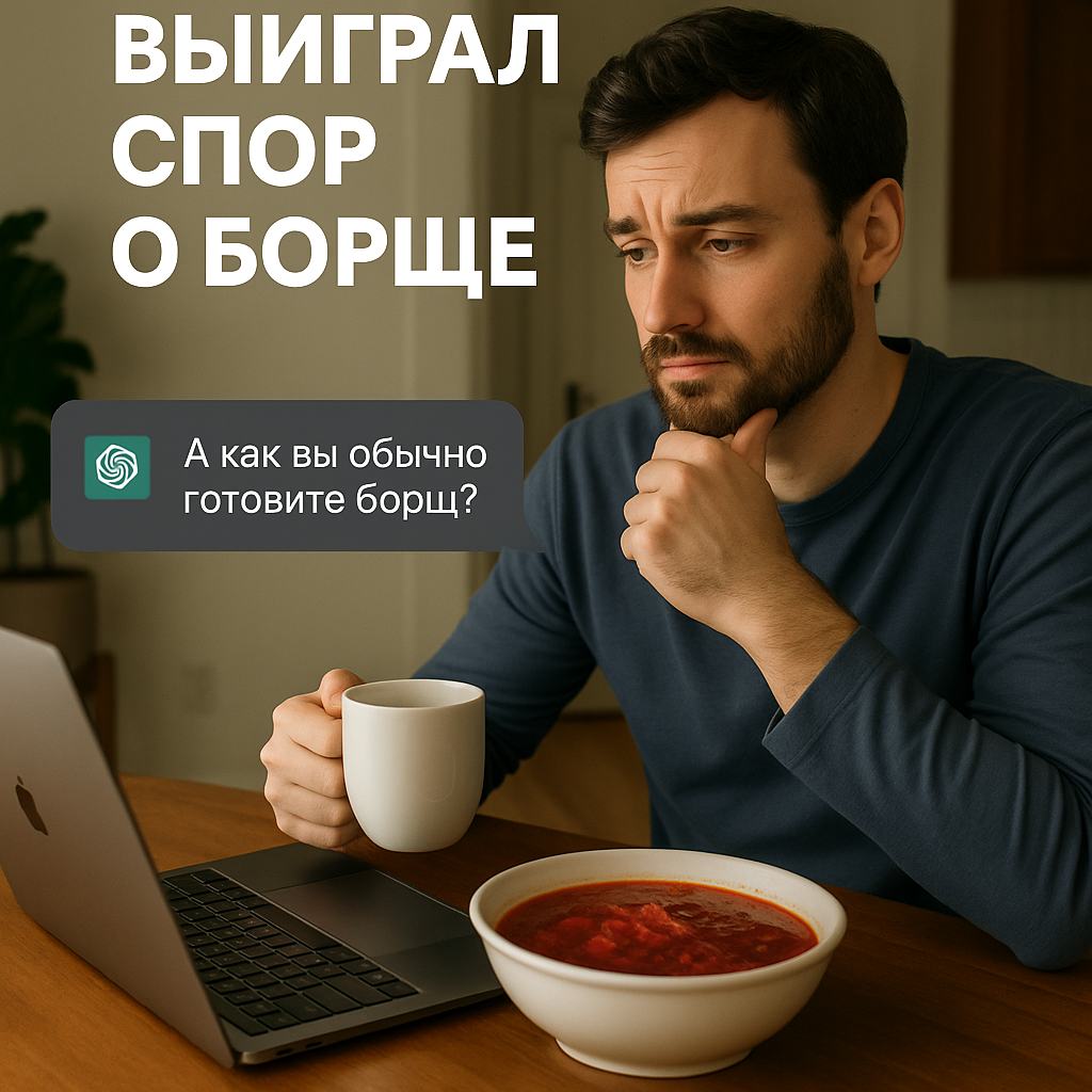 ИИ не просто выдал рецепт. Он аргументировал, зачем нужно пассеровать свёклу отдельно, привёл исторические факты, региональные отличия и даже упомянул украинский стандарт ГОСТ 2019 года. А потом задал встречный вопрос: «А как вы обычно готовите борщ?» И вот я, человек, сижу и думаю: почему я вдруг оправдываюсь перед нейросетью?