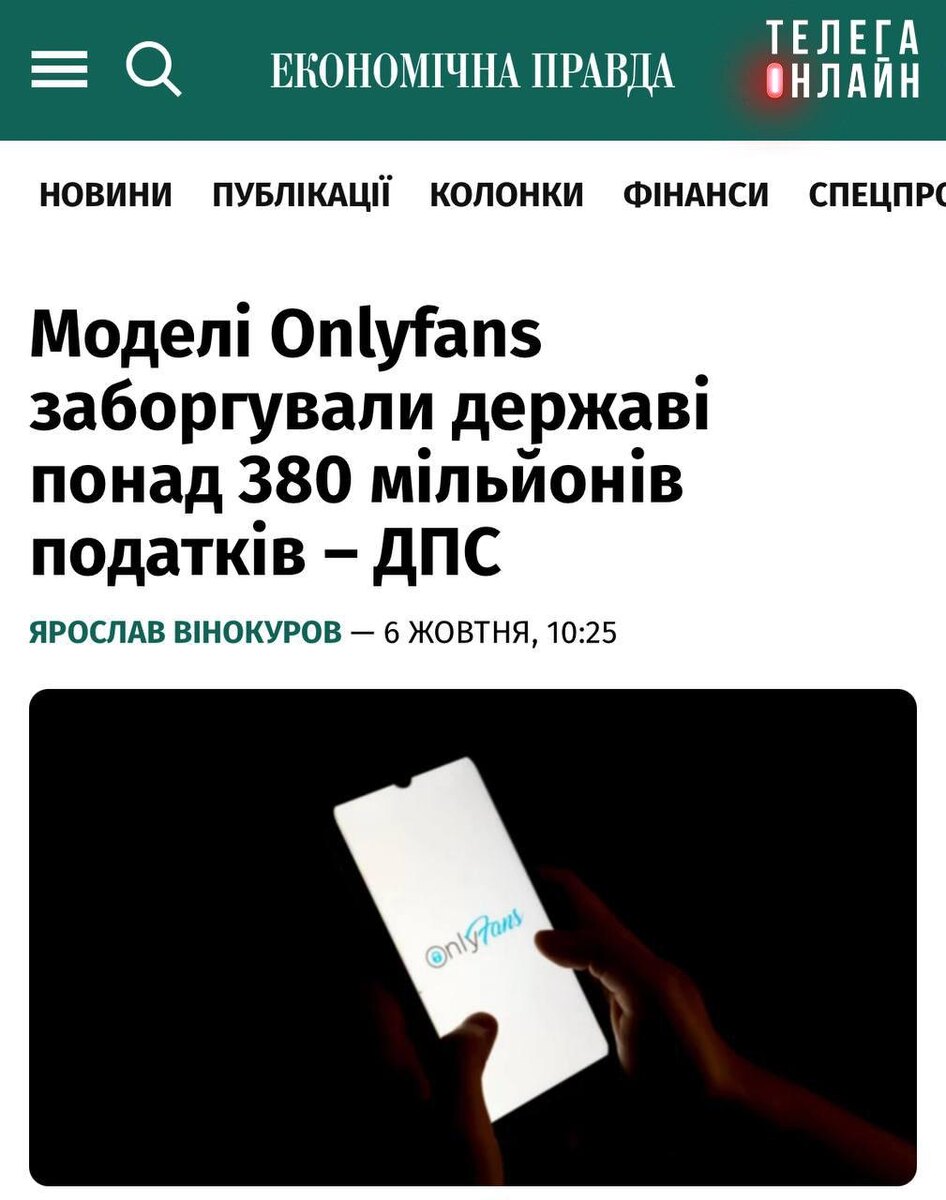 Украинская налоговая насчитала 384,7 млн гривен задолженности по налогам моделям OnlyFans.