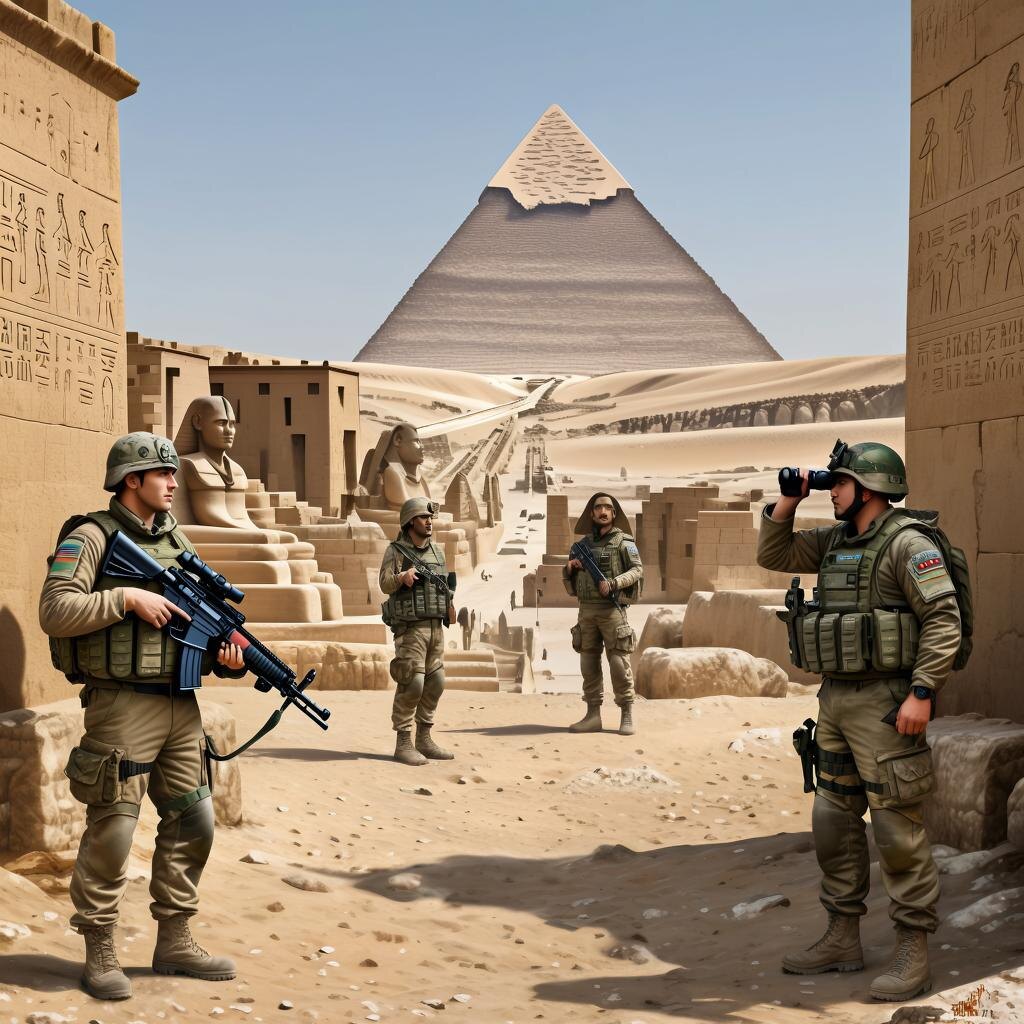 Они стояли перед пирамидой Хеопса, ощущая холод древних камней сквозь подошвы ботинок. Время вокруг замерло, словно само пространство остановилось на мгновение. Вокруг царила тишина, нарушаемая лишь легким шелестом ветра, пробегающего по пустынному ландшафту. Группа российских спецназовцев была выброшена сюда случайностью, экспериментальной телепортационной системой, разработанной учеными будущего. Их задача заключалась в изучении феноменов пространственно-временных аномалий, однако никто не ожидал, что первый же прыжок приведет их прямо в сердце древней цивилизации. Глава 1: Приземление — Мы прибыли раньше назначенного срока, товарищ капитан, — доложил младший лейтенант Петров, сверяя показания приборов. Капитан Орлов хмурился, разглядывая незнакомый ландшафт. Вместо ожидаемого российского полигона они оказались посреди египетской пустыни, окружённые величественными сооружениями прошлого. — Что скажете, ученые? Это ошибка навигационного оборудования? Доктор Семенова, специалист