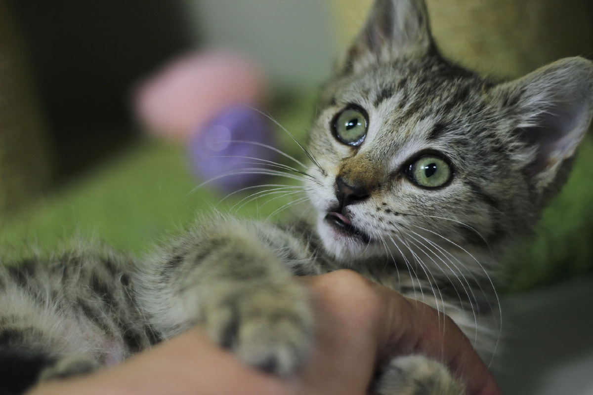 Юкси попала к нам в приют совсем котёнком. Полосатая, несуразная, никому не нужная малышка. У нее ещё даже зубки не сменились, а жизнь уже показала ей не лучшую свою сторону.