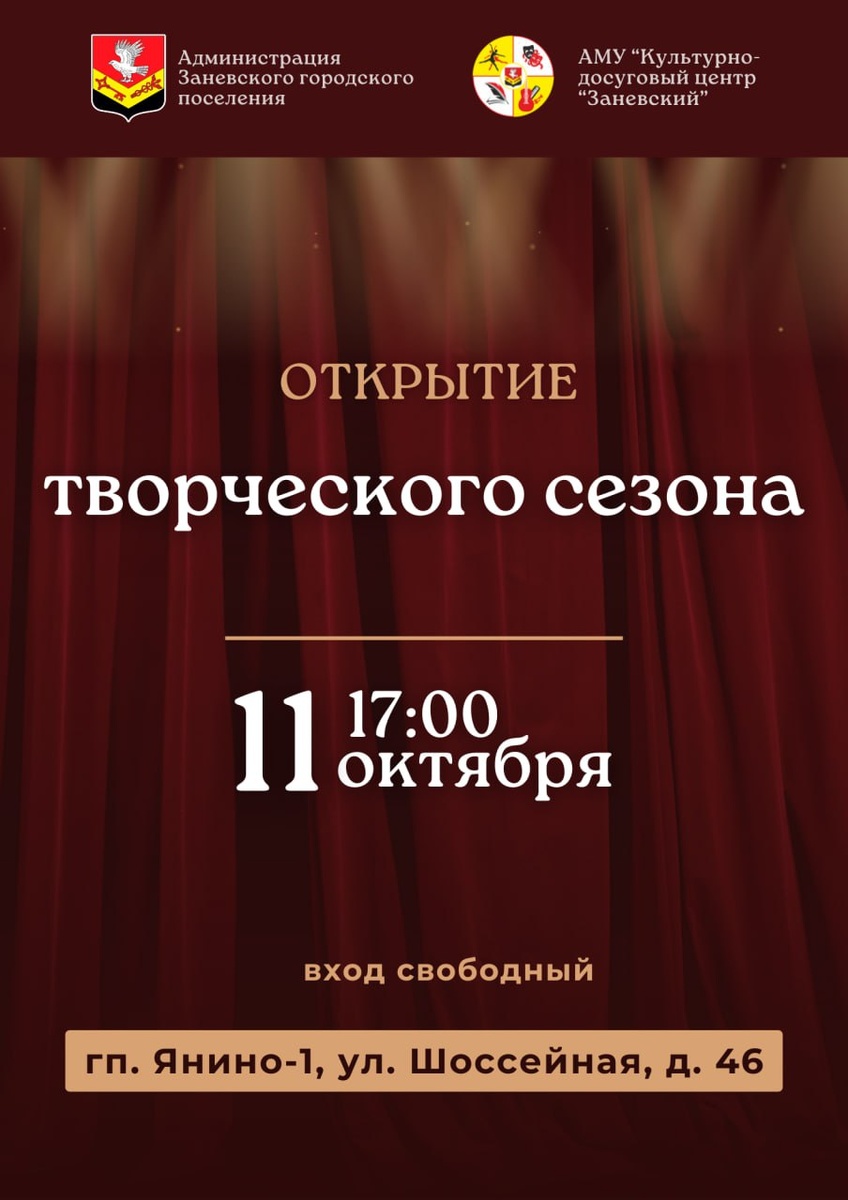 11 октября в 17:00 приглашаем жителей Заневского городского поселения на яркое событие осени — открытие нового сезона в муниципальном доме культуры.