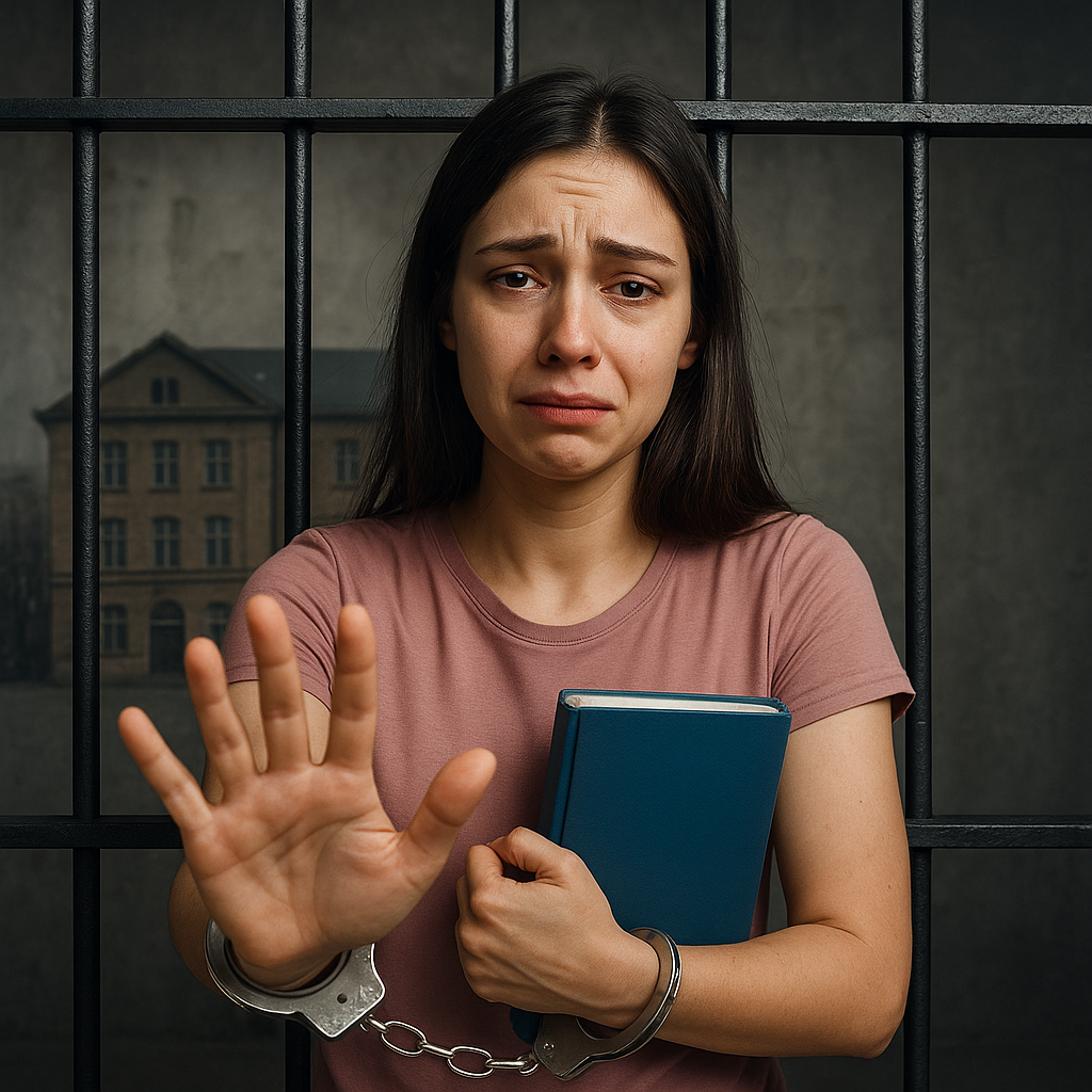 Каждый день тянулся как вечность. Вместо лекций я слышала только гул шагов охранника и громкие крики других заключённых. По ночам я не спала — только плакала и молилась. Я боялась, что никогда больше не выйду отсюда.
