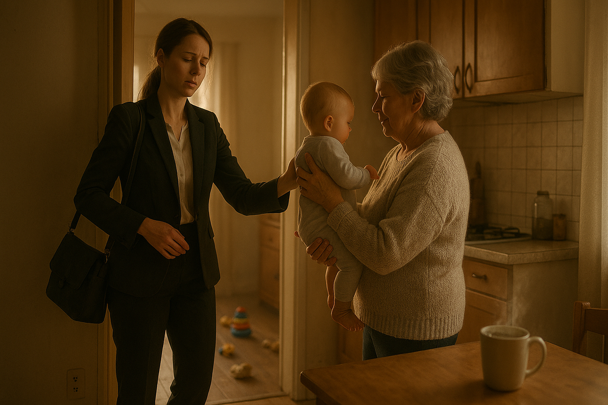 Ирина взяла внучку на руки, прижала к себе. Малышка тут же успокоилась, уткнулась носом в бабушкино плечо.
