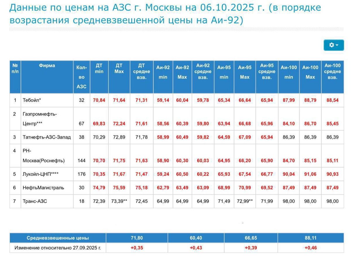 ⛽️ Цены на бензин растут в Москве вторую неделю подряд. Средняя стоимость литра Аи-92 поднялась на 43 копейки и достигла 60,4 рублей. Аи-95 подорожал на 39 копеек — до 66,65 рублей. Мы в 📲 max.ru/newgrad_pavlino ⚠️НОВОЕ ПАВЛИНО 🆕🆕🆕🆕🆕🆕🍃 Прислать новость|Подписаться 🎩