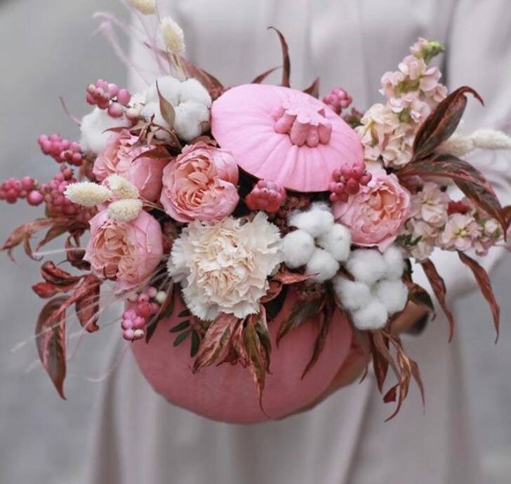 Создавать уникальную композицию в настоящей тыкве с живыми цветами и сухоцветами. Это не просто рукоделие — это маленький праздник красоты и творчества!