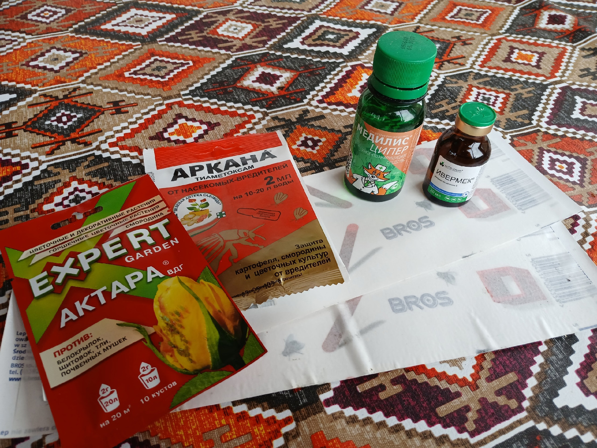 Ивермектин. Купить можно в ветаптеках. Разводим 10 мл на литр воды, дальше по той же схеме, что и тиаметоксам, или можно опрыскать из пульверизатора.