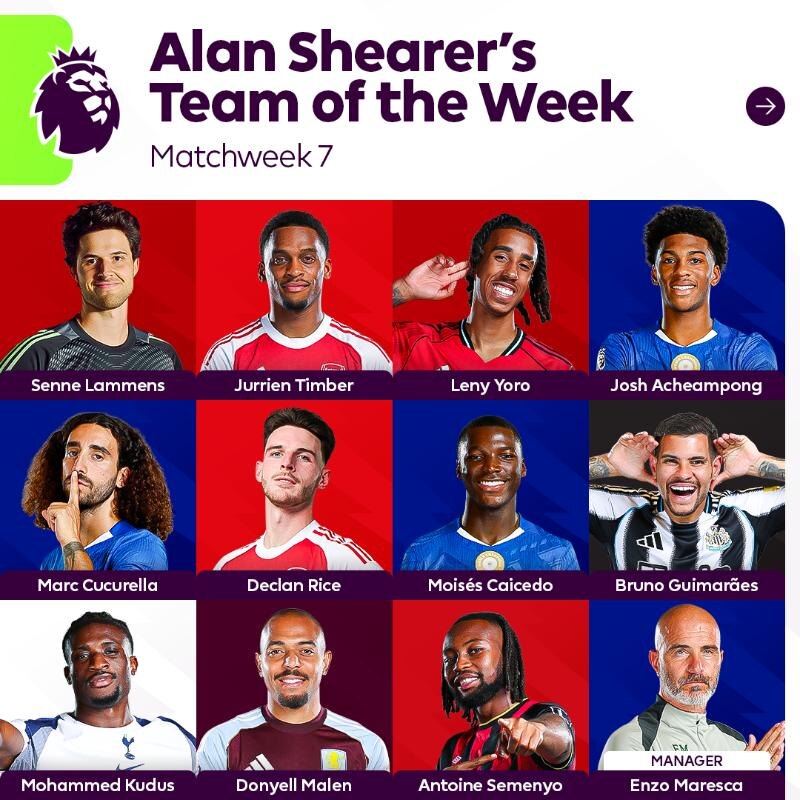 Символическая сборная 7-го тура Премьер-Лиги по версии Алана Ширера 🔝