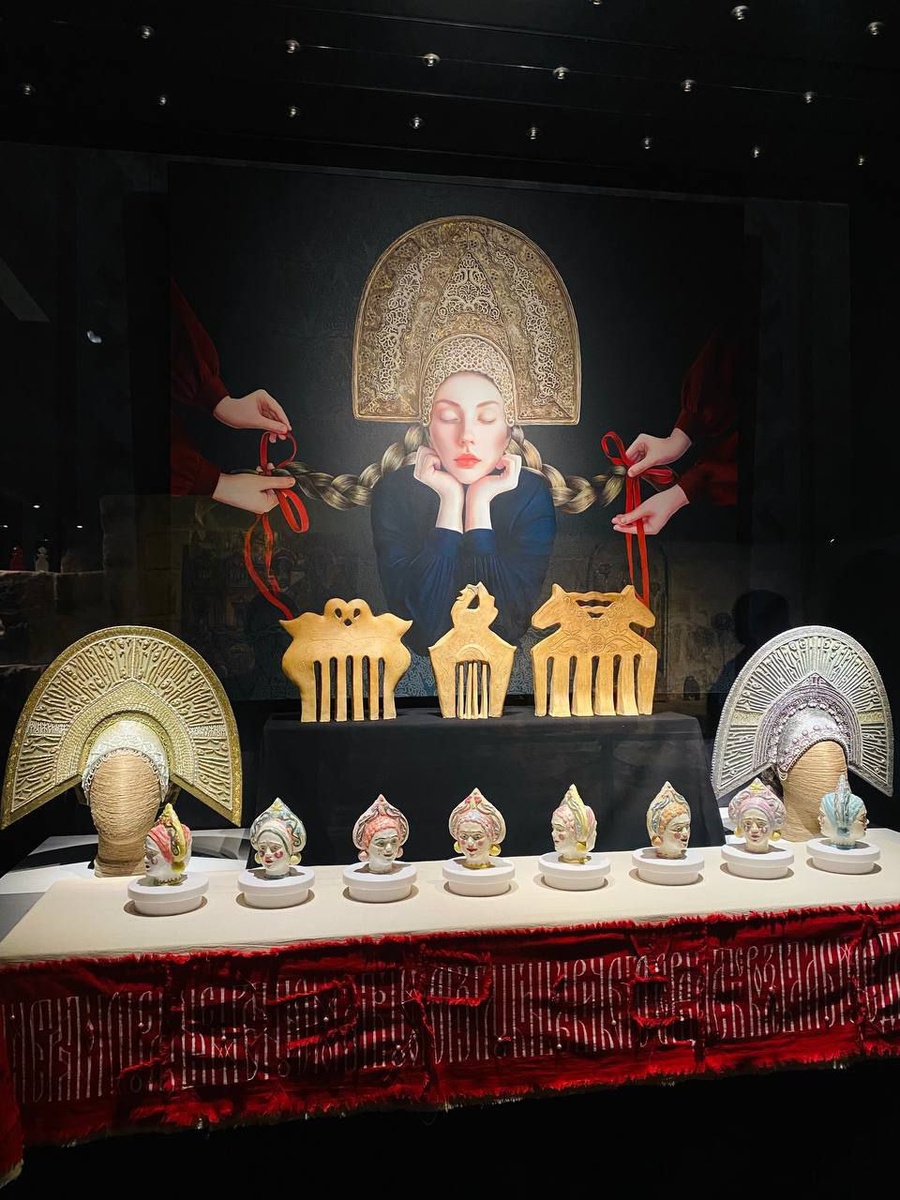 В Зарядье открылась выставка «Сокровенное -живое» Экспозиция в русском стиле объединила проекты художников, которые обращаются к традициям и народным ремеслам, и создают как применимые сегодня вещи — например, керамическую посуду со сказочными образами от Вероники Волкавичюте и капсулы-матрешки для станции Алиса от Николая Андрианова, так и предметы современного искусства. Установленное в центре зала основание Китайгородской стены 16 века, по словам кураторов, стало метафорой традиционности и фундамента: «Это основание, которое связывает нас с минувшими веками и позволяет нам сегодня оставаться собой». Нам особенно понравились кокошники мастера Виктории Осмеркиной с обращениями к Богородице. «На кокошниках вышито две молитвы — обращения женщины к Богородице. На золотом — "Богородица, покрой мою голову жемчужным кокошником", то есть "Дай мне мужа". Потому что раньше когда женщина выходила замуж, она надевала кокошник, чтобы волосы были прикрыты. Это был показатель социального статуса