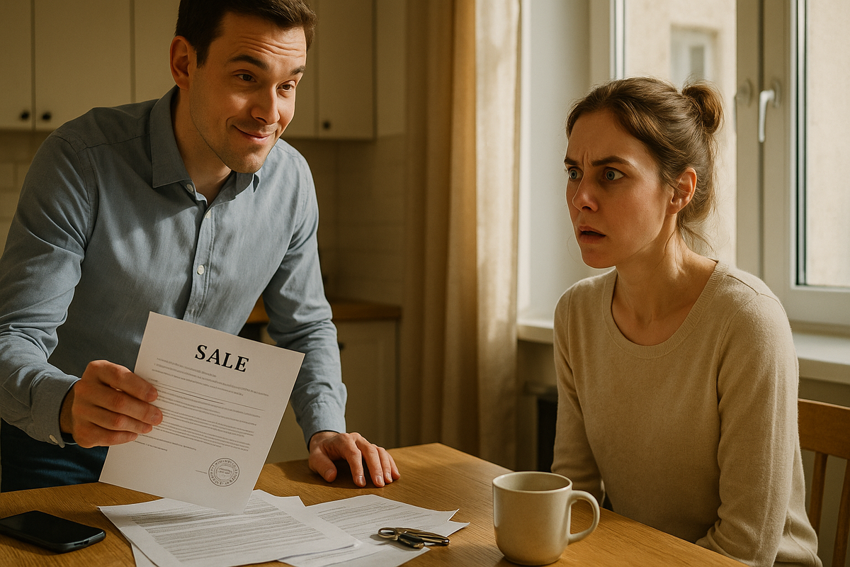 — В Росреестре подано заявление о сделке с твоей квартирой. Продавец — твой муж. Документы поданы неделю назад.