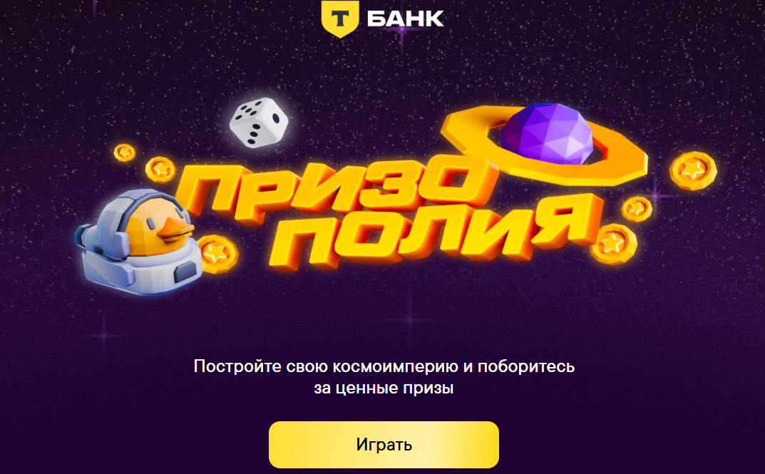 Сегодня подписчики в моем тг-канале активно мне начали сигнализировать о том, что в Т-банке вновь запустили призополию. Кстати, вы играли в нее раньше? Маякните, если да Я как умная птица побежала сразу проверять приложение, в котором никаких уведомлений мне лично не поступало, но тут на помощь пришел поиск. Если у вас нет уведомления об этой игре, просто вводите в поиске "Призополия". Также можно найти в разделе Город. Кажется, что игра еще не запустилась на полную, потому что ссылка на условия игры в ней недоступна. И на официальной страничке игры в условиях лежат данные за 2024 год. Но мы с вами пташки ранние, поэтому уже сейчас советую заходит. Игра, судя по таймеру, пройдет в течение 13 дней. Что из себя представляет: вспоминайте Монополию. Нужно кидать по два кубика за ход, число на гранях означает количество шагов, которые вы можете сделать. Ходите, попадаете на клетку. На ней может быть билет на розыгрыш или задание, где вам будет предложено построить объект, который зате