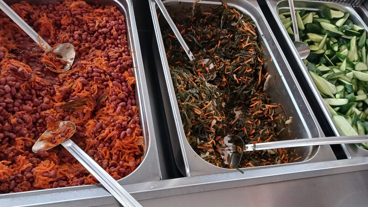 6 октября ЗАВТРАК салаты на выбор: тушеная фасоль с овощами, огурцы и морская капуста я взяла по чуть-чуть всего: каша была пшенная с черносливом (новая идея! это вкусно, и я так никогда не варила) на горячее - курица и овощное рагу колбаса еще была, но я не ела ОБЕД очень довольна сегодня обедом, все вкусно и разнообразно салаты: морковь с яблоками, свекла тушеная, салат Витаминный на закуску малосольная рыба суп я не ела, муж ел суп с пшеничной крупой на второе у мужа биточек из кальмаров и рис с овощами у меня было написано, что плов с курицей (в меню), по факту хороший кусок курицы и изумительный рис на десерт дали виноград А мы и сами сегодня возле санатория купили инжир и виноград. Инжир 300 руб за лоточек, а виноград - 300 руб за кг Ели на полдник фрукты. УЖИН салат оливье (я не ела, т.к. и на второе тоже картошка была), а вообще оливье с курицей тут очень даже ничего горячее - азу с говядиной и творожная запеканка муж заказывал тонкие блины и, как всегда, еще кефир и булочки