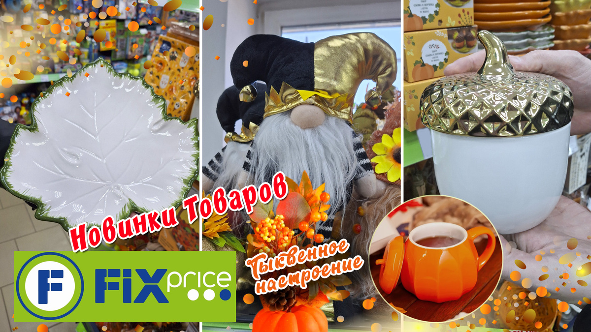 в разделе товаров для дома в магазине Фикс Прайс / Fix Price в октябре. Тарелка в осеннем стиле. Диаметр: 20,5 см. Материал: каменная керамика. Цена - 229 руб. В виде трёх кленовых листиков. Для подачи соусов, снеков и закусок. Размер: 19х19х5 см. Материал: каменная керамика. Цвета в ассортименте. Цена - 299 руб. Подходит для холодных и горячих напитков. Объём: 350 мл. Материал: керамика. Цена - 199 руб. С зеркальной поверхностью предмет декора в осеннем стиле. Размер: 9,5х9,5х8,5 см. Материал: керамика. Цена - 124 руб. В форме жёлудя для хранения мелочей. Размер: 13х13х15,7 см. Объём: 650 мл. Материал: керамика. Цвет золотой и серебряный. Цена - 279 руб. Размер: 9,6х9,6х8,5 см. С ароматами "Солёная карамель", "Деревенское яблоко", "Ванильный капучино" и "Тыквенный пирог". Цена - 279 руб. Подсвечник в виде объёмного силуэта тыквы. Представле
