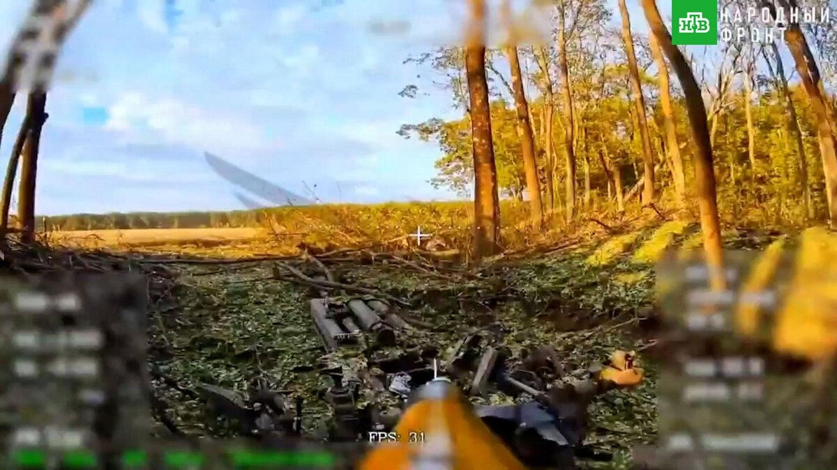 Минобороны опубликовало кадры из села Писаревка Сумской области. На них видно, как операторы БПЛА центра «Рубикон» ударили дроном по артиллерийскому орудию М777 ВСУ. После этого дроноводы поразили склад боеприпасов, который находился рядом с его позицией.