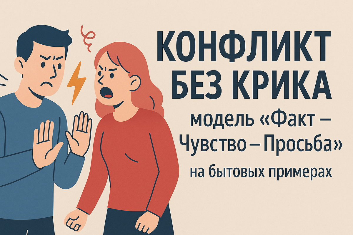 На следующий день я записалась к психологу. И она мне показала схему, которая звучит просто до смешного, но работает безотказно: Факт - Чувство - Просьба.