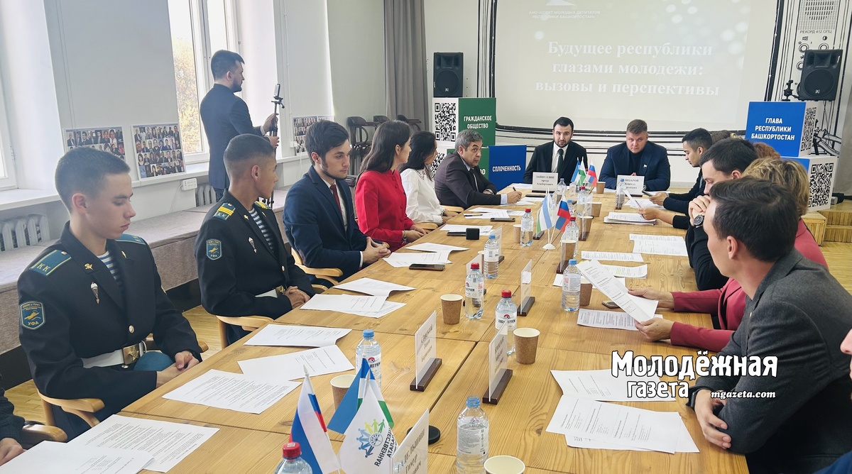 На площадке Общественного просветительского центра в Уфе состоялся круглый стол на тему «Будущее республики глазами молодежи: вызовы и перспективы». Участниками мероприятия, организованного Советом молодых депутатов РБ, стали представители власти и образовательных учреждений, общественники, эксперты, активная молодежь и другие приглашенные гости. С приветственным словом ко всем присутствующим обратился директор организации Артур Зайнуллин. Он подробно рассказал об уровне вовлеченности молодежи Башкортостана в политику и социальную жизнь республики. Данные были выявлены в ходе социологического исследования, проведенного методом уличного опроса среди 327 молодых людей в возрасте от 22 до 25 лет. Так, почти половина (49%) респондентов являются студентами, 31% совмещают учебу с работой, а 20% полностью работают. Наиболее сильные ассоциации с Республикой Башкортостан у молодежи вызывают «Курай» (33%), «Салават Юлаев» (21%) и «Радий Хабиров» (19%). В числе самых актуальных проблем молодежи Б