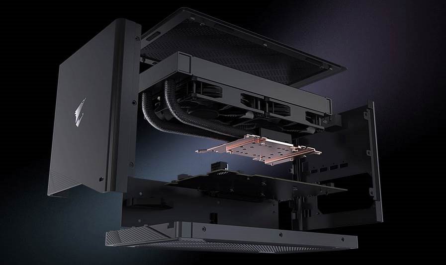 Как было отмечено выше, в Gigabyte Aorus RTX 5090 AI Box используется полноценная настольная версия видеокарты RTX 5090 32 ГБ. Видеокарта оснащается готовой системой жидкостного охлаждения (СЖО) с радиатором типоразмера 240 мм и двумя 120-мм вентиляторами. В док-станцию встроен блок питания мощностью 850 Вт.
