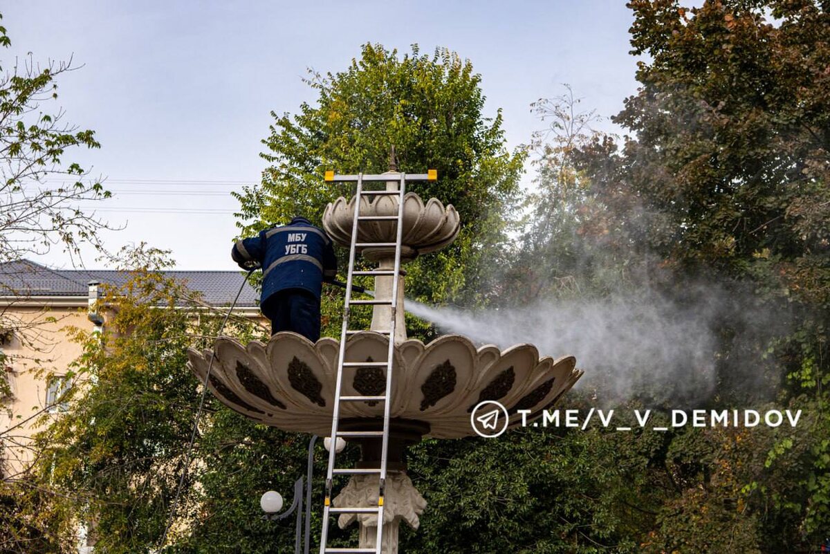 В Белгороде фонтаны готовят к зиме ⛲️ Специалисты Белгорблагоустройства законсервируют 21 объект за два месяца. Плоскостные фонтаны в Центральном парке им. В.И. Ленина, в сквере Южном и на пляже «Берега» промоют и просушат, укроют железные решетки, чтобы защитить полости от снега и льда. В Городском саду на Пасхальном фонтане работы уже завершили. В планах – фонтан у Дома офицеров, который отремонтировали в этом году, и в парке Памяти. Мы на связи в MAX Подписаться на нас|Предложить новость