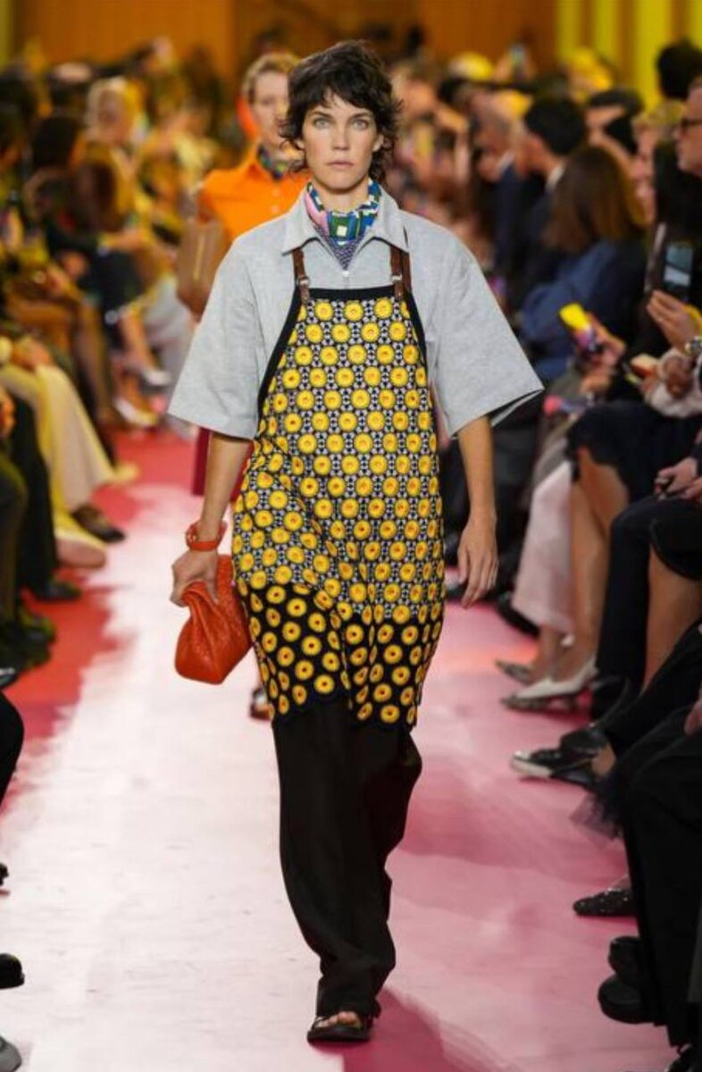 Miu Miu продолжают экспериментировать с эстетикой униформы. Правда, на этот раз вместо «рабочих» курток, которые Миучча Прада ввела в моду несколько сезонов назад, — фартуки. Но нашлись и тренды, которые легко адаптировать в повседневные образы — многослойные луки и рубашки-поло. Grazia