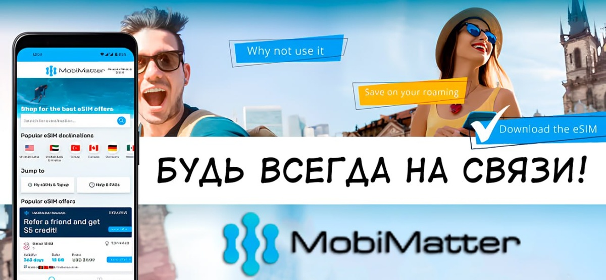 🪪 Со стремительным развитием мобильных технологий, покупка местных сим-карт, при кратковременных поездках в разные страны, отпала сама собой. 🛒 Сейчас, гораздо удобнее НЕ покупать сим-карты на месте, НЕ искать их в своем кошельке, НЕ вспоминать какая из них нужна, а просто оформить eSIM. 📱 К примеру, через сервис 📲 MobiMatter. Для этого, достаточно просто зарегистрироваться на сайте. ✅ Онлайн-платформа MobiMatter предлагает виртуальные eSIM-карты для интернета и связи по всему миру - в более чем 190 странах. С ней можно мгновенно получить доступ к интернету сразу после приземления, без необходимости искать локальные SIM-карты в незнакомой стране. ℹ️ Особенности: 🔵 Более 500 различных предложений eSIM для более чем 190 стран мира 🔵 Возможность выбора тарифов с разным сроком действия (от 1 дня до года) 🔵 Отсутствие необходимости заключать долгосрочные контракты 🔵 Поддержка высокоскоростных сетей 4G и 5G ❓ Как купить eSIM? ➡️ Укажите Страну назначения ➡️ Отсортируйте, примени