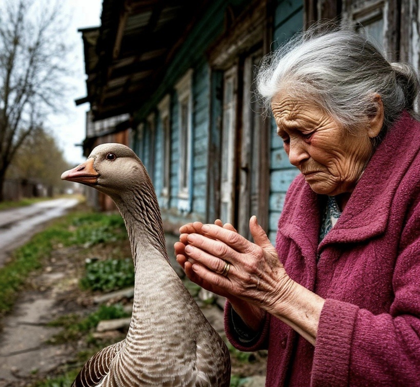 А потом он склонился перед гусем Анчоусом, который, словно понимая все, подошел и нежно обнял его двумя сильными крыльями, положив свою теплую голову ему на колено. Рядом, шепча слова благодарной молитвы, крестилась бабушка Матрена.
