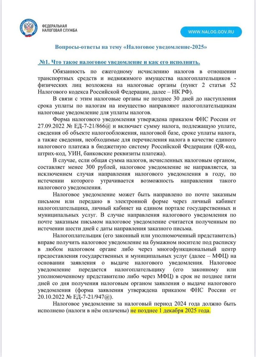 Федеральная налоговая служба России информирует о ключевых нововведениях, предоставляет рекомендации и напоминает о своевременном выполнении