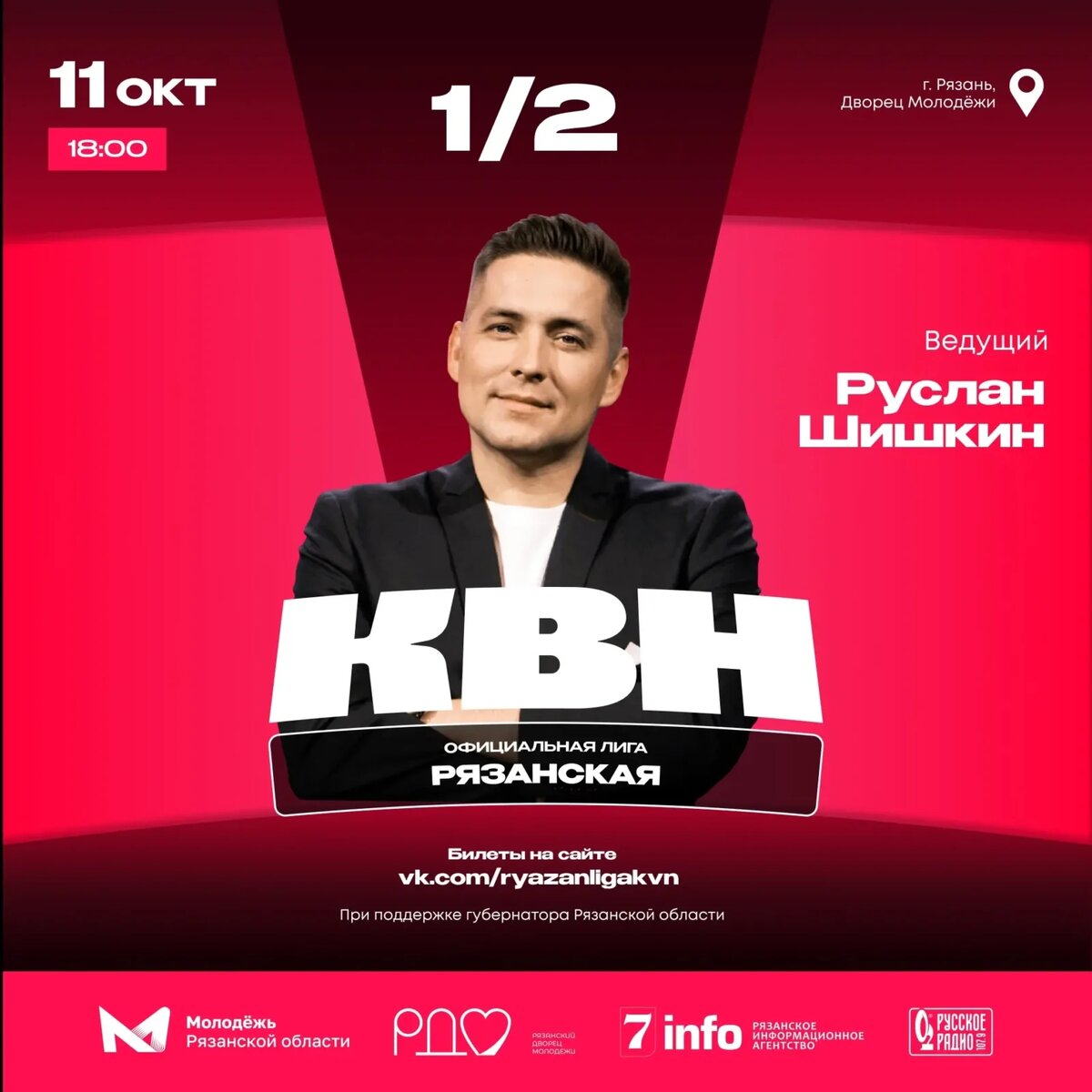 Стали доступны билеты на полуфинал игры Официальной Рязанской лиги МС КВН, которая состоится 11 октября в 18:00 в Рязанском дворце молодёжи. Билеты можно получить на портале кассы.ру. За право выйти в финал будут бороться команды из Рязани, Воронежа, Егорьевска и Республики Мордовия. Обещаем, вас ждёт захватывающее и увлекательное зрелище! Также в паблике 7info можно принять участие в розыгрыше билетов на главное юмористическое событие осени! Разыгрывается пять призовых наборов, каждый из которых включает в себя два билета на полуфинал Официальной Рязанской лиги МС КВН. Кроме этого, билеты можно получить в профкомах и студенческих клубах вузов и ссузов города. Возрастное ограничение 12+.