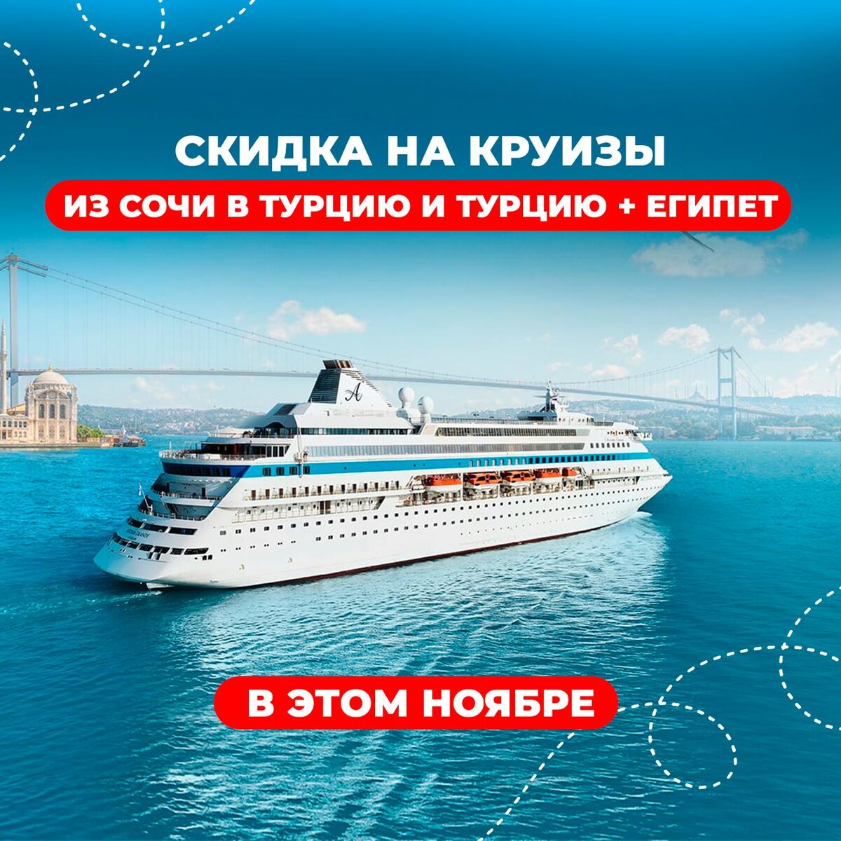 🔥 АКЦИЯ: круизы из Сочи в Турцию и в Турцию + Египет от 7.746 ₽/чел в день + скидка для пенсионеров