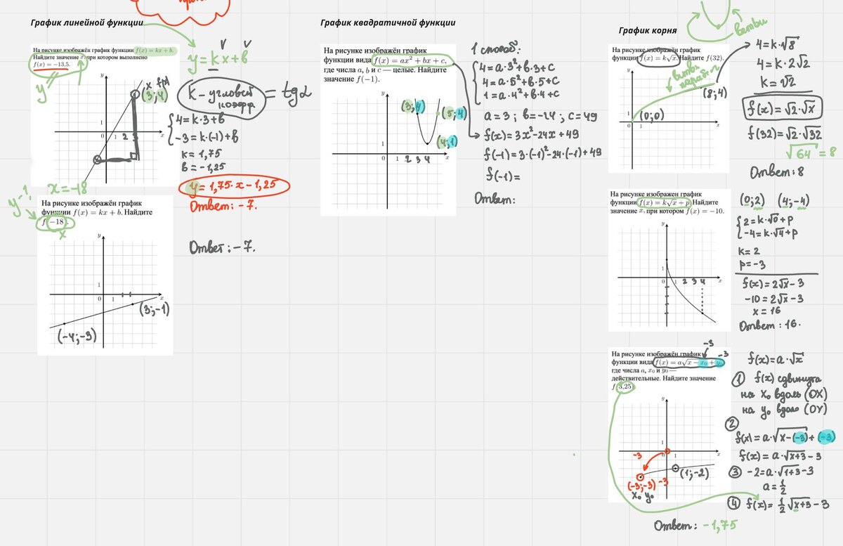 ГРАФИКИ ФУНКЦИЙ: ЧТО СТОИТ ЗНАТЬ ❓ Если хочешь уверенно решать задания ЕГЭ, с графиками нужно быть на «ты». Вот список тем и формул, которые нужно знать и узнавать с первого взгляда: 1️⃣ Базовые графики: – Прямая – Парабола – Модульная функция – Гипербола – Кубическая парабола – Корневая функция – Квадратный корень – Степенные функции – Тригонометрические функции: синус, косинус, тангенс – Показательная функция – Логарифмическая функция 2️⃣ Основные формулы графиков: – Линейная функция — y = kx + b – Квадратичная функция — y = ax² + bx + c – Модуль — y = |x| – Обратная пропорциональность — y = k/x – Кубическая функция — y = x³ – Корневая функция — y = √x – Показательная функция — y = a^x – Логарифмическая — y = logₐx – Синус, косинус, тангенс — y = sin x, y = cos x, y = tg x 3️⃣ Преобразования графиков: – Сдвиги вверх/вниз, вправо/влево – Отражение относительно осей – Растяжение и сжатие – Изменение масштаба по осям 4️⃣ Что знать на ЕГЭ: – Как по уравнению понять форму графика – К