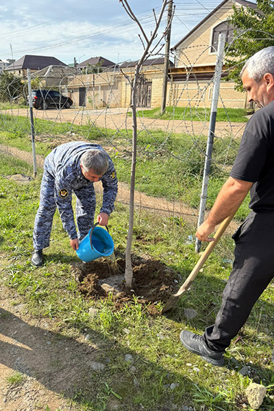 В рамках масштабной Всероссийской экологической акции «Зеленая Россия» сотрудники следственного изолятора № 2 организовали и провели субботник по благоустройству и озеленению прилегающей территории. Целью мероприятия стало не только наведение чистоты и порядка, но и внесение вклада в улучшение экологической обстановки, а также создание более комфортной и ухоженной среды вокруг учреждения. Силами личного состава была приведена в порядок территория, убран мусор, произведена покраска бордюров. Особое внимание было уделено озеленению: сотрудники высадили саженцы деревьев и декоративных кустарников, разбили новые клумбы. Их усилия не только сделали территорию следственного изолятора более ухоженной, но и послужили примером ответственного отношения к природе. - Работа кипела, и мы справились на отлично! – сказал заместитель начальника учреждения майор внутренней службы Борис Келбиханов. - Спасибо всем сотрудникам, кто откликнулся и внес свой вклад в благоустройство и озеленение нашей общей т