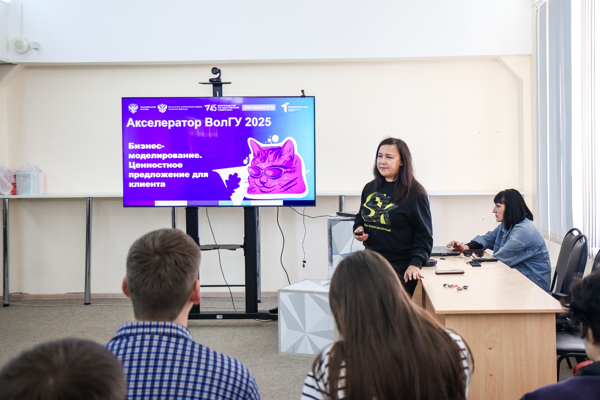Спикером выступила Юлия Бахрачева — доцент кафедры информационной безопасности ВолГУ и эксперт Фонда содействия инновациям. Она подробно рассказала студентам, что такое ценностное предложение и как правильно его формировать.