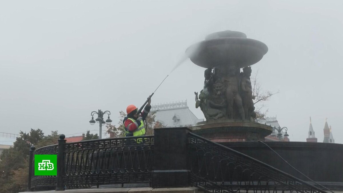 [ Смотреть видео на сайте НТВ ] Старейший из действующих фонтанов Москвы подготовили к зиме. В Москве в рамках подготовки к зиме промыли фонтан «Витали». Это старейший из действующих фонтанов Москвы, который находится в сквере на Театральной площади. Специалисты слили воду из чаши, обработали гранитные поверхности, продули трубопроводы сжатым воздухом. Само сооружение промыли специальным средством, которое растворяет известковые отложения и полностью безопасно для окружающей среды. [ Смотреть видео на сайте НТВ ]