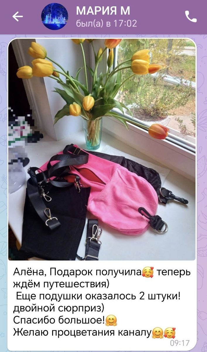 Мария — победитель розыгрыша и обладатель сумок-подушек, о которых рассказывала здесь.
