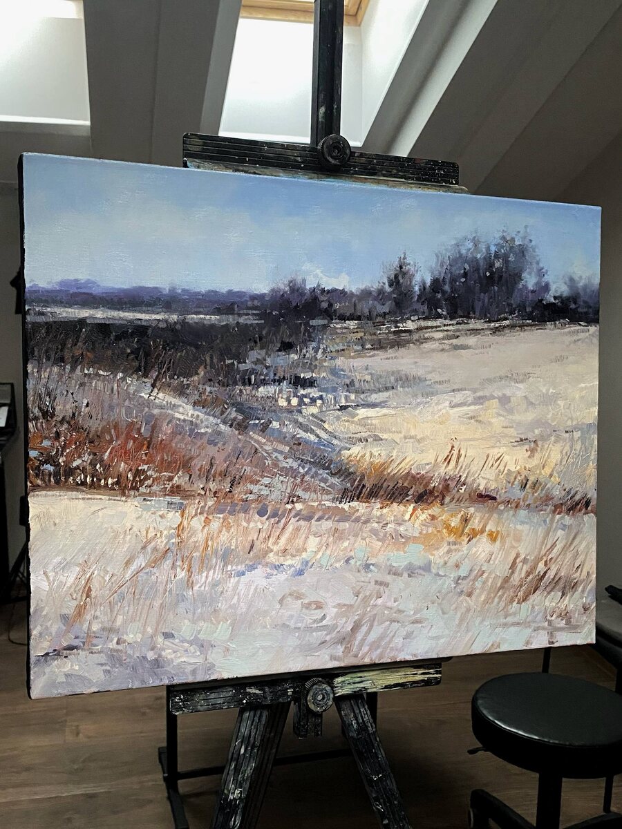 Мой Сегодняшний этюд «Зимнее поле. Овраг»