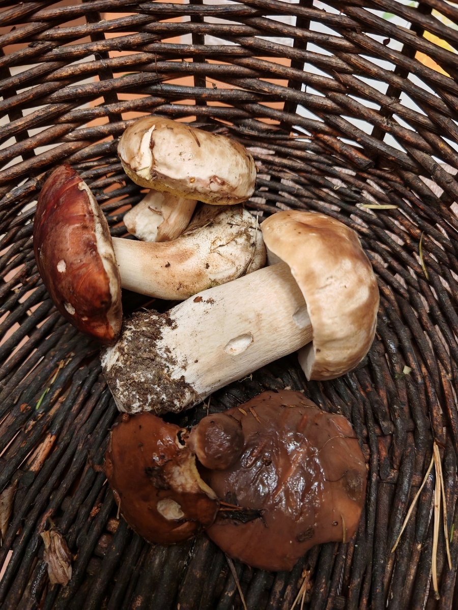 Сегодняшнее обнадёживающее, что сезон ещё продолжается! Если обещанные синоптиками на эту неделю осенние дождики и температура воздуха подтвердятся, да если и туманы будут... В общем, хотелось бы! Пока сухо для осени. Но после первых ночных заморозков и последующего потепления встретил пару белых - шапки аж седые, подосиновик. Чистые, аж звенят! Маслят сосновых поздних, из двух десятков найденных, взял пару - большинство червивые. На грибницу поздних опят не пошёл. Рядовка фиолетовая и говорушка, хоть и собирали их грибники в прошедшие выходные активно - много свежих срезов, встречаются в достаточном для сбора количестве. Корзинку при желании наберёте. Не мои грибы, но кто собирает - идите, есть! Надышался, на несколько бутербродов нашёл своих грибов. Нашёл - придётся есть... Константин Кошелев