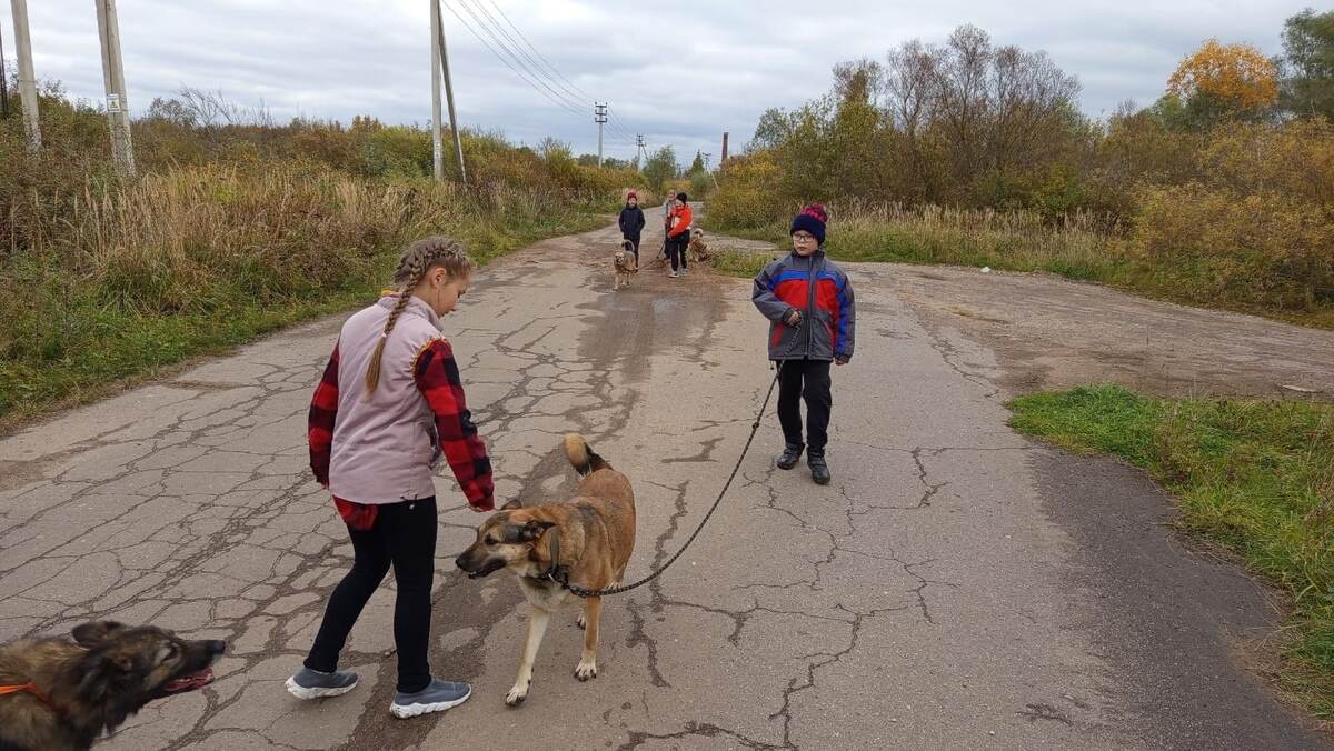 После четвëртого урока мальчишки ездили в приют для бездомных животных "Дружок", гуляли с бездомышами.