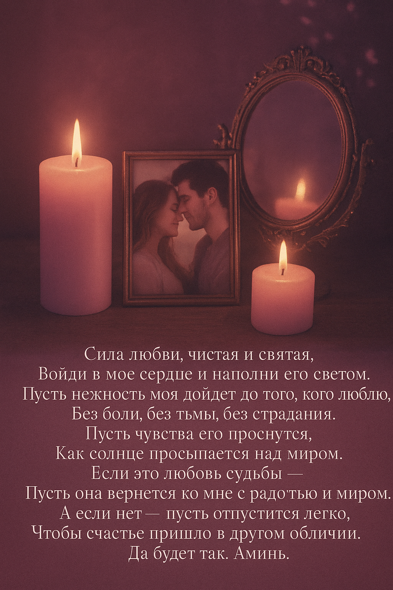 Магия не работает через страх, отчаяние или обиду. Она живет там, где есть вера, спокойствие и внутренняя сила. Перед любым обрядом настройтесь на любовь — не на страсть, не на боль, а именно на ощущение тепла, благодарности и нежности к тому, кого вы любите.