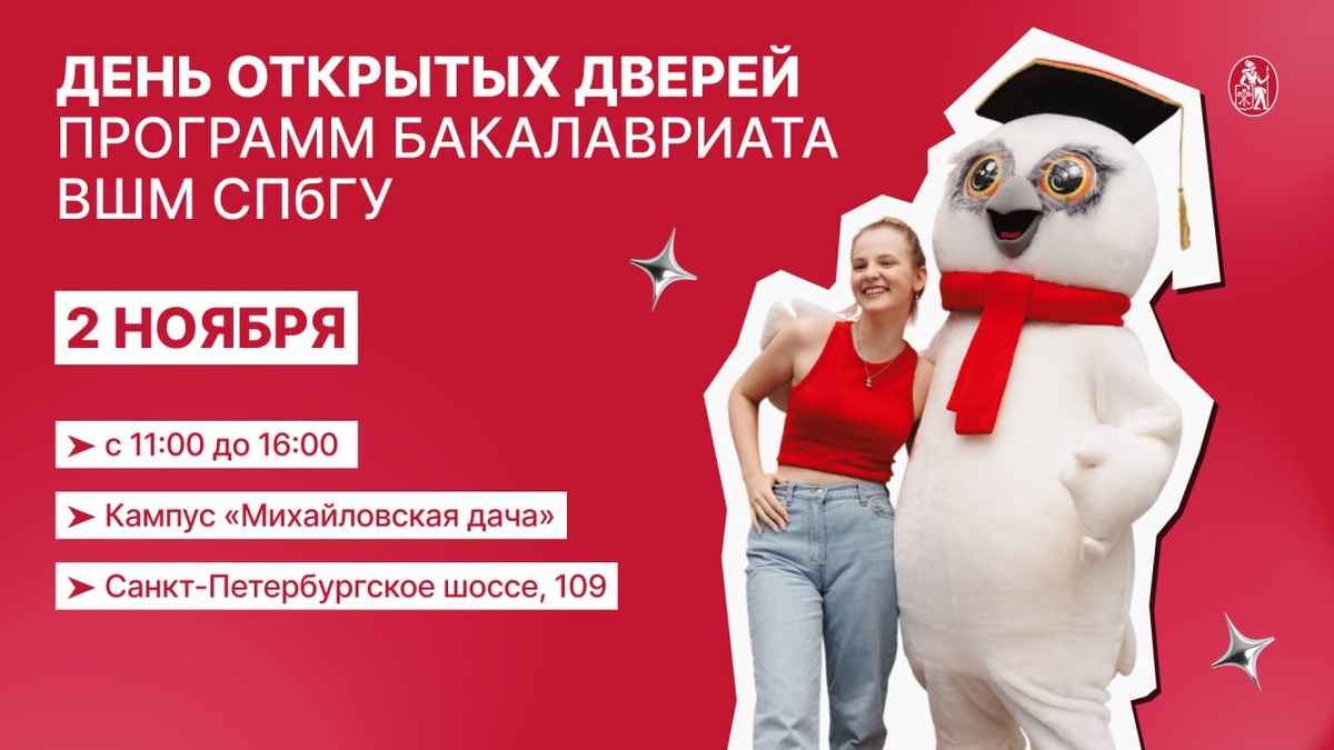 🦉 Ждём встречи с будущими студентами — 2 ноября пройдёт День открытых дверей программ бакалавриата ВШМ СПбГУ! Приглашаем старшеклассников и