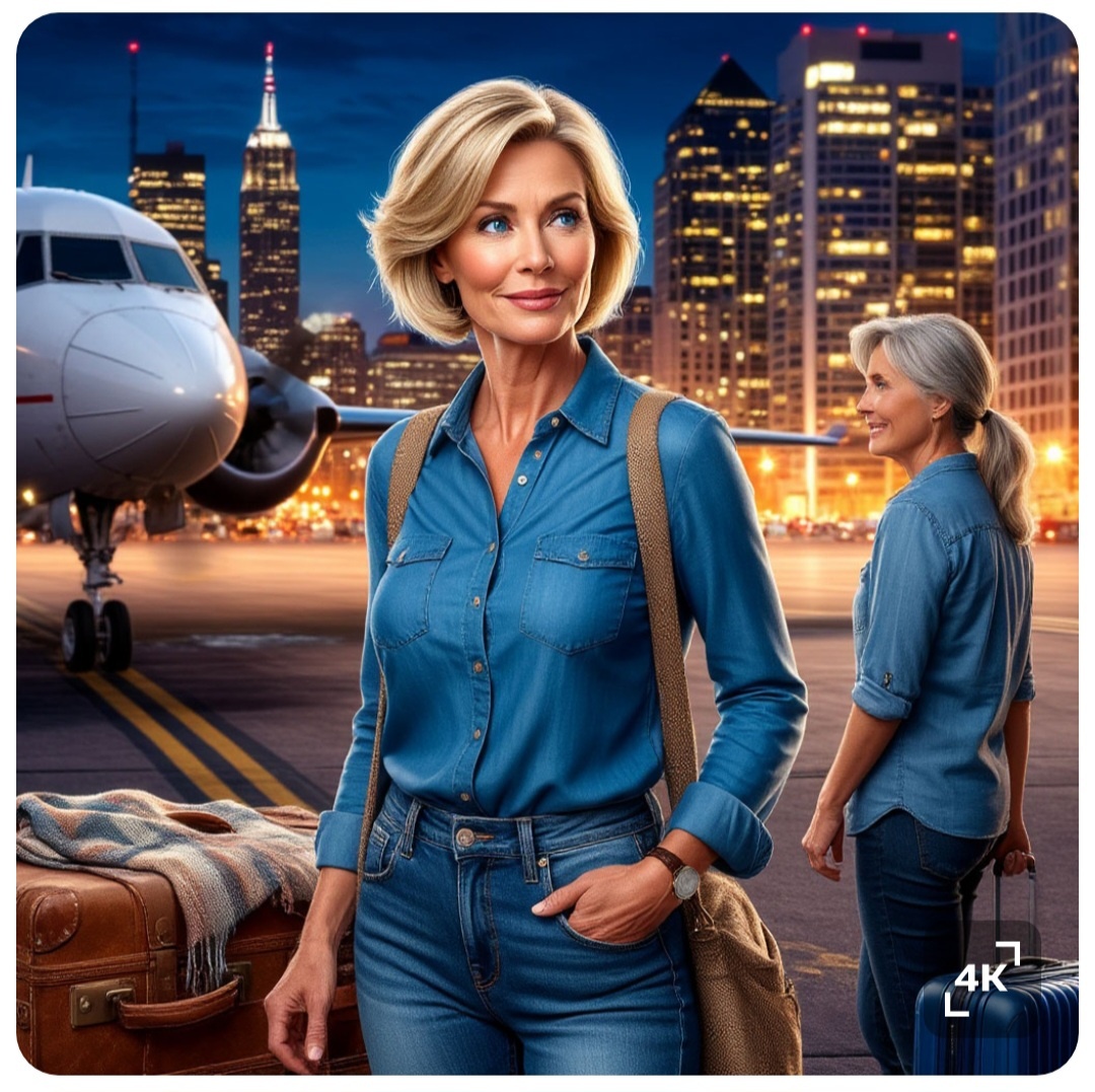 Она вышла к ним с большим новым чемоданом , счастливой улыбкой на лице....