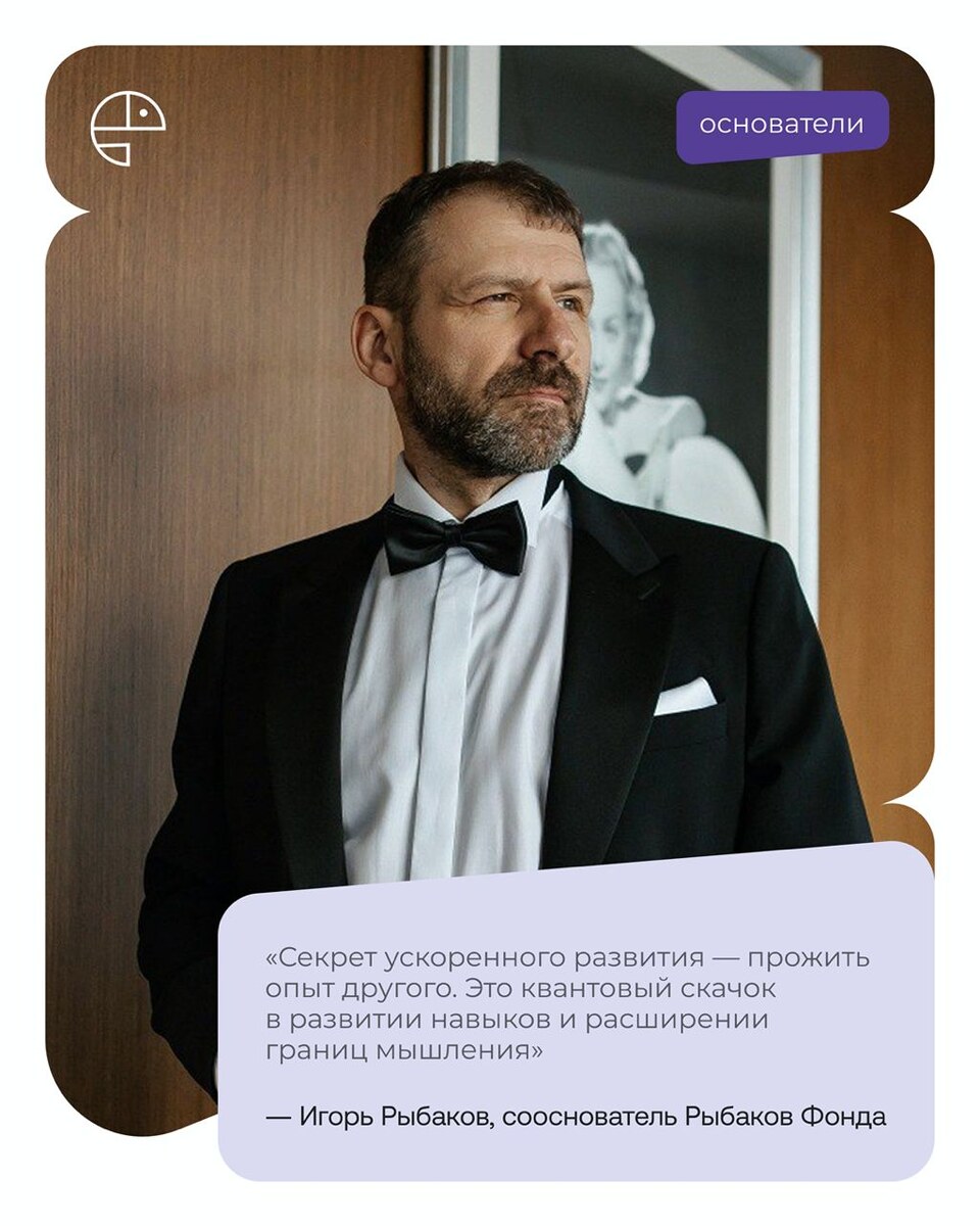 Особенность этого чаптера — прямая связь с экосистемой партнёров Рыбакова: от Глобального университета до компаний-лидеров, созданных выпускниками Физтеха. Это пространство, где бизнес, образование и филантропия соединяются и усиливают друг друга