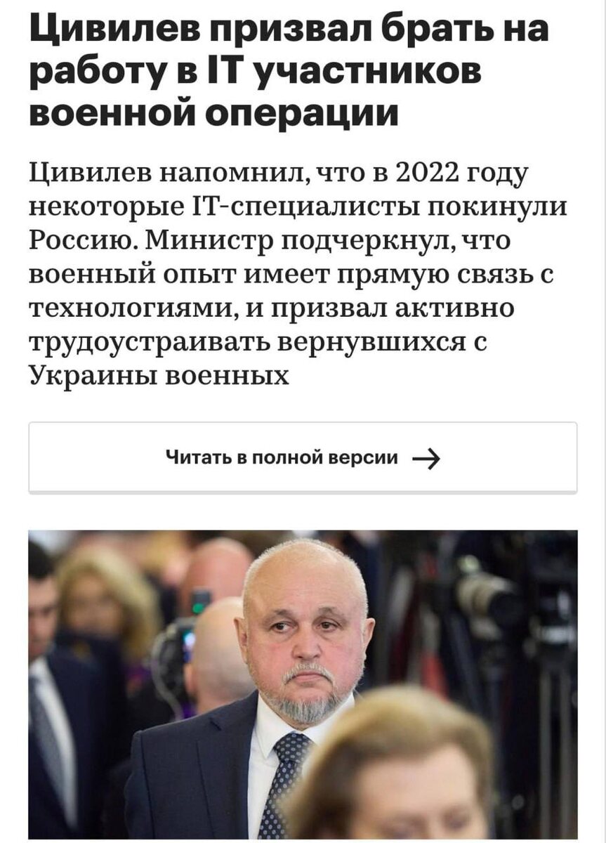 Участники СВО станут айтишниками — официально. С таким предложением выступил глава Минэнерго Цивилёв. Чиновник считает, что военный опыт НАПРЯМУЮ связан с технологиями, а работа в IT поможет адаптироваться к мирной жизни и восполнить мощный дефицит кадров в индустрии. 👉🏻Новости №1 в Ростове 💌Прислать новость/фото Ростов Папа теперь в Ⓜ️🅰️❌
