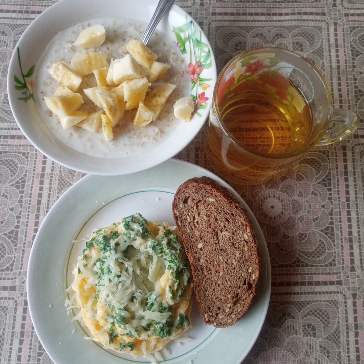 06.10.25. Понедельник. Сегодня проснулась в 6.20. Ну конечно, как никуда не надо спешить, так прям разбирает проснуться рано)). На улице дождь, такой тихий, осенний. Спать бы и спать, но не спится. Взяла телефон в руки, отредактировала немного статью, почитала ваши комментарии, кому не ответила вчера, сделала это сегодня. И так как я отвечаю на все комментарии, то ответы занимают довольно приличное время. На чтение статей остаётся совсем мало времени. Вот и сейчас я уже проголодалась, мне завтракать пора. Муж уже позавтракал и уехал в поликлинику. Приготовила, как всегда, кашу, сегодня добавила в неё банан. Сделала в микроволновке омлет из двух яиц с зеленью петрушки, сверху потёрла немного сыра. Сухая корочка хлеба и чай зелёный с мелиссой. Вот и весь мой завтрак. Вчера я планировала помыть окна, хоть часть окон. Но сегодня на улице идёт дождь, окна мыть расхотелось. Неуютно как-то это делать в такую погоду. Успею ещё, близится опять солнечная и теплая погода на несколько дней. Из
