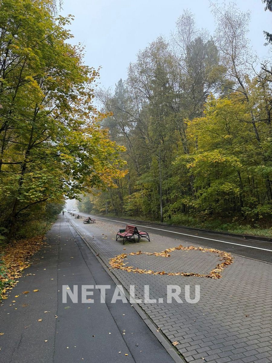 Фотофакт: композиция из листьев на аллее Лесные пруды