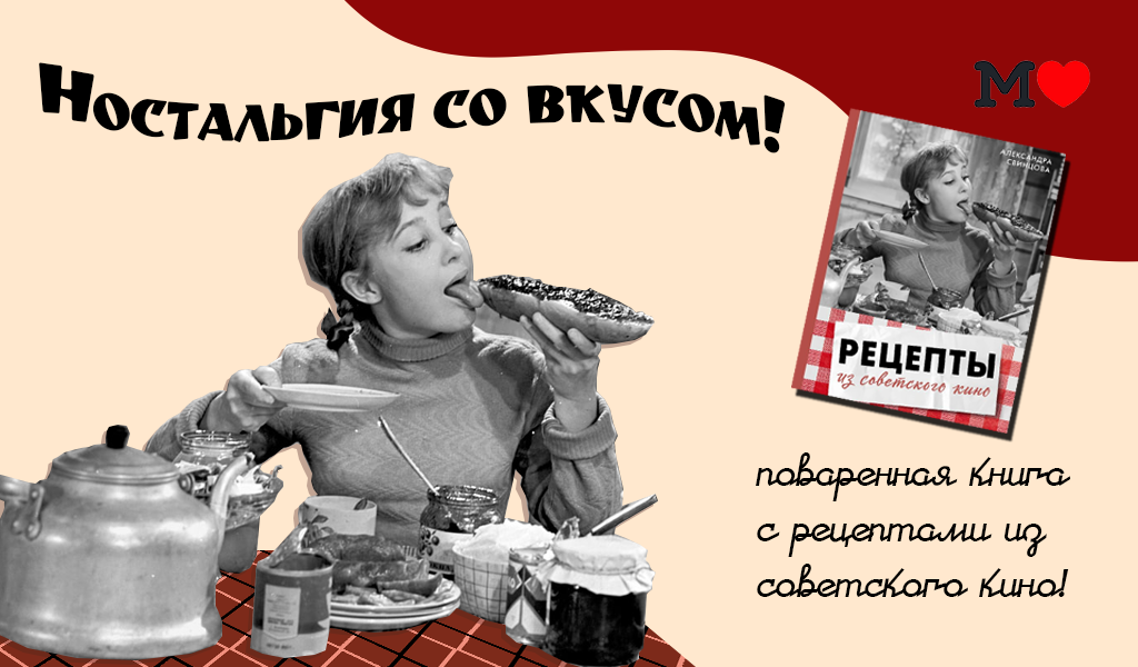 «Какая гадость — эта ваша заливная рыба!» — говорит Ипполит в известной всеми «Иронии судьбы, или С легким паром!». Не каждая хозяйка будет рада такому комплименту… Вот если бы в руки Наде попала поваренная книга с самыми настоящими рецептами из советского кино, было бы другое дело! «Рецепты из советского кино» — это не просто поваренная книга, а кулинарный билет в советское прошлое. В мир, где самые простые блюда готовились с душой, а праздничные столы всегда удивляли зрителя своей оригинальностью. Не знаем, любите ли вы заливную рыбу и часто ли готовите многочисленные блюда из картошки, как Тося Кислицина, но готовка и еда всегда требуют экспериментов! И лучше всего экспериментировать с надежным помощником под рукой — поваренной книгой. В ней вместе с фотографиями и историями из разных фильмов вы найдете рецепты на любой вкус. От сложных — Надиной заливной рыбы и запеченной утки «Того самого Мюнхгаузена», до простых — омлета Шерлока Холмса и «овсянки, сэр»! И конечно, сладкое на десе